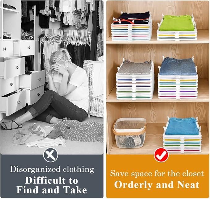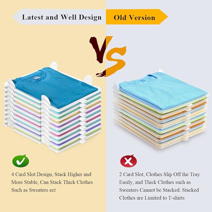✅ The New Way: Each shirt has its own dedicated slot. Grab the bottom one? The top ones stay perfectly in place. Zero mess. Zero re-folding.